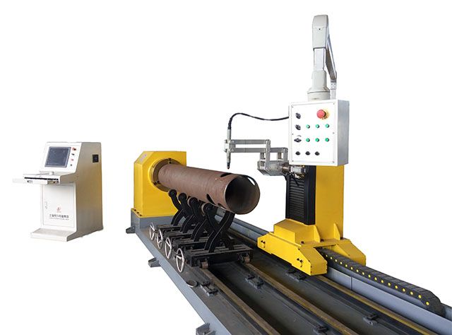 YC-XGX系列數控相貫線切割機(相貫線坡口切割機)是一種對鋼管端部結合處作自動計算和切斷的設備。該機器能廣泛應用于造船、建筑、石化、機械、冶金等行業的管道結構件的切割加工。操作工人不須編程、只需輸入相互配合的管子的半徑、相交角度等參數,機器就能自動切割出管子的相貫線、相貫孔、以及焊接坡口,不再需要人工打磨。